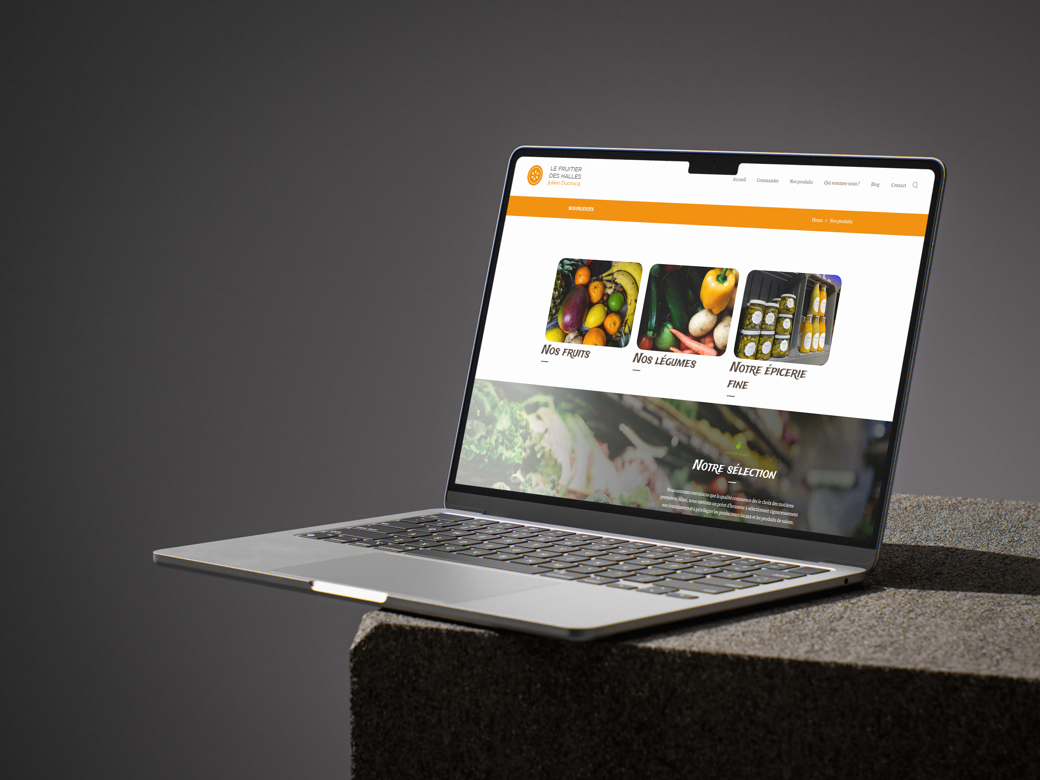 Nous avons réalisé la création du site vitrine, en mettant l’accent sur une navigation claire et une présentation lisible des produits, des services et des actualités de la boutique. Le site a été pensé pour valoriser l’univers du primeur, ses engagements et son implantation locale, tout en facilitant la prise de contact.